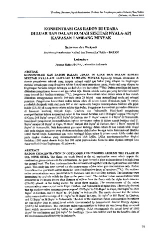 di Cepu, 248 Bq/m3 sampai 3525 Bq/m3 di Cirebon, dan 51 Bq/m3 sampai 114 Bq/m3 di Prabumulih.