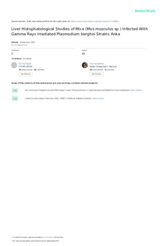 Tur, Rahardjo and Siti, Nurhayati and Dwi, Ramadhani (2013) Liver Histophatological Studies of Mice (Mus musculus sp.) Infected With Gamma Rays Irradiated Plasmodium berghei Strains Anka. HAYATI Journal of Biosciences, 20 (3). pp. 144-150. ISSN ISSN: 1978-3019