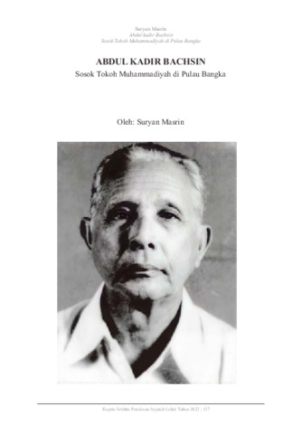 Suryan, Masrin (2022) Abdul Kadir Bachsin sosok tokoh Muhammadiyah di Pulau Bangka. Kapita Selekta Penulisan Sejarah Lokal, 5 (-): 3. pp. 157-189. ISSN 2986-0830