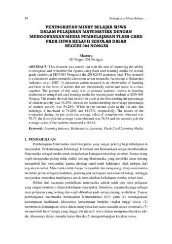 Mastura, Mastura (2022) Peningkatan minat belajar siswa dalam pelajaran matematika dengan menggunakan media pembelajaran flash card pada siswa kelas II Sekolah Dasar Negeri 004 Nongsa. Jurnal Pendidikan Kreatif, 3 (1): 5. pp. 38-55. ISSN 2987-3231