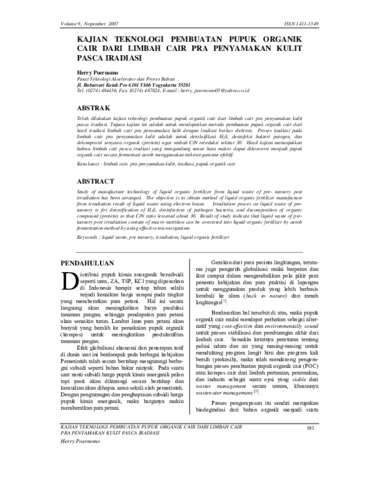 Kata kunci : limbah cair, pra penyamakan kulit, iradiasi, pupuk organik cair