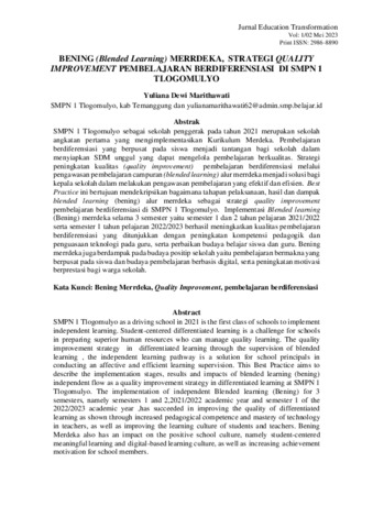 | Uncontrolled Keywords: | Bening merdeka, Quality improvement, Pembelajaran berdiferensiasi, Blended learning, Quality of education |