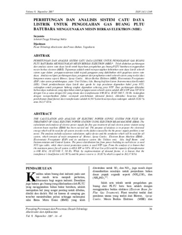 PERHITUNGAN DAN ANALISIS SISTEM CATU DAYA LISTRIK UNTUK PENGOLAHAN GAS BUANG