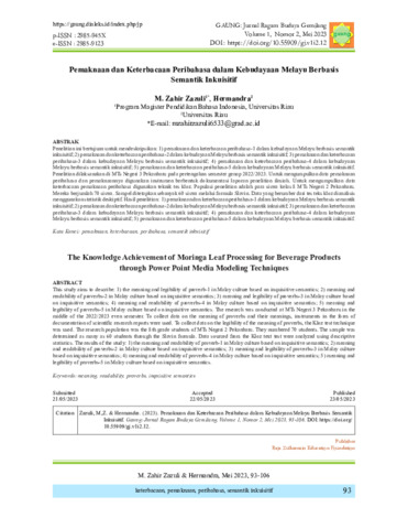 M., Zahir Zazuli and Hermandra, Hermandra (2023) Pemaknaan dan keterbacaan peribahasa dalam kebudayaan Melayu berbasis semantik inkuisitif. Gaung: Jurnal Ragam Budaya Gemilang, 1 (2): 2. pp. 93-106. ISSN 2985-945X