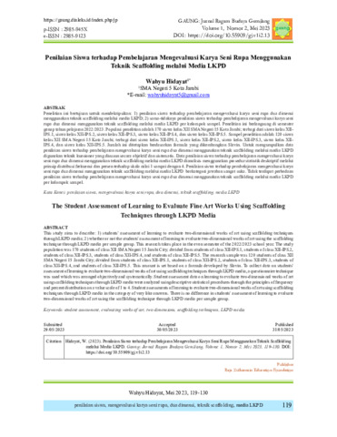 Wahyu, Hidayat (2023) Penilaian siswa terhadap pembelajaran mengevaluasi karya seni rupa menggunakan teknik scaffolding melalui media LKPD. Gaung: Jurnal Ragam Budaya Gemilang, 1 (2): 4. pp. 119-130. ISSN 2985-945X