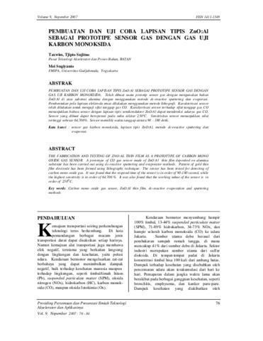 Kata kunci : sensor gas karbon monoksida, lapisan tipis ZnO:Al, metode dc-reactive sputtering dan