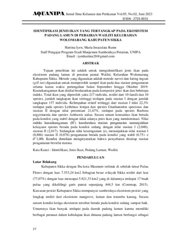 Hartina, Iyen and Maria, Imaculata Rume (2022) Identifikasi jenis ikan yang tertangkap pada ekosistem padang lamun di Perairan Wailiti Kelurahan Wolomarang Kabupaten Sikka. Aquanipa : Jurnal Ilmu Kelautan dan Perikanan, 5 (2): 3. pp. 27-38. ISSN 2723-0031