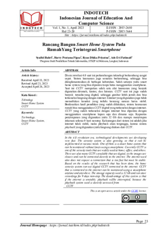 Syaiful, Bahri and Harry, Pratama Figna and Ryan, Dhika Priyatna and Ade, Evi Fatimah (2023) Rancang bangun smart home system pada rumah yang terintegrasi smartphone. Indonesian Journal of Education and Computer Science, 1 (1): 4. pp. 23-29. ISSN 2987-7644