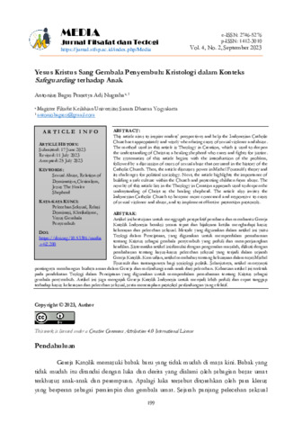 Antonius, Bagas Prasetya Adi Nugraha (2023) Yesus Kristus sang gembala penyembuh: Kristologi dalam konteks Safeguarding terhadap anak. Media: Jurnal Filsafat dan Teologi, 4 (2): 6. pp. 199-214. ISSN 2775-0116