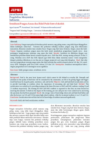 | Uncontrolled Keywords: | Halal, Pangan aman, Sosialisasi, Siswa, Food security, Halal food, Students |