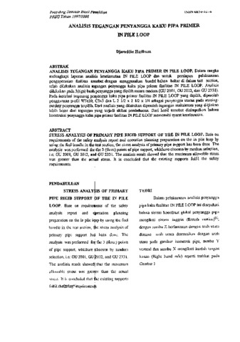 ANALISIS TEGANGAN ENYANGGAKAKU PIPA PRIMER IN PILE LOOP. Dalam rangka