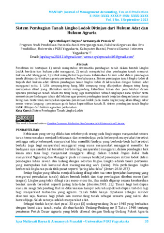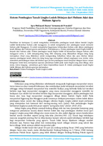 Iqra, Muliayati Bayna and Armansyah, Prasakti (2023) Sistem pembagian tanah Lingko Lodok ditinjau dari hukum adat dan hukum agraria. Journal of Management Accounting, Tax and Production, 1 (1): 5. pp. 35-42. ISSN 3025-7786