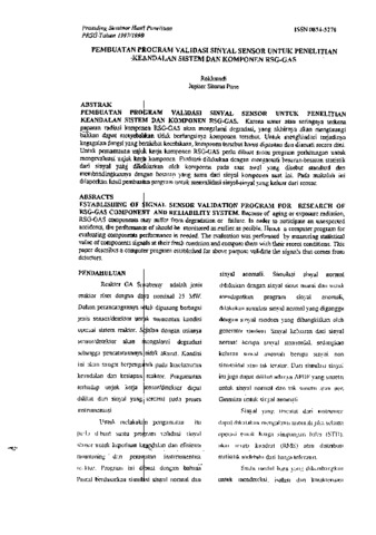 Rokhmadi, RKD and Jupiter Sitorus Pane, JSP (1998) PEMBUATAN PROGRAM VALIDASI SINYAL SENSOR UNTUK PENELITIAN KEANDALANSJSTEM DAN KOMPONEN RSG-GAS. PROSIDING SEMINAR HASIL PENELITIAN PRSG. pp. 62-70. ISSN 0854-5278