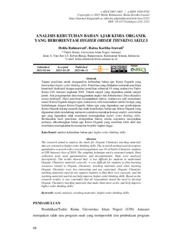 | Uncontrolled Keywords: | Analisis kebutuhan, Bahan ajar, Higher order thinking skills, Teaching materials, Chemistry education, College students |