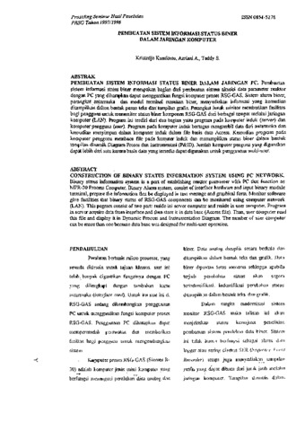 Kristedjo Kurnianto, KK and Azriani, Azriani and Teddy Syawal, TS (1998) PEMBUATANSISTEM INFORMASI STATUS BINER DALAM JARINGAN KOMPUTER. PROSIDING SEMINAR HASIL PENELITIAN PRSG. pp. 71-77. ISSN 0854-5278