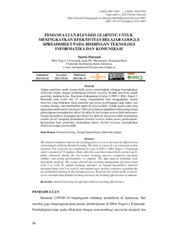 Tujuan penelitian untuk memperbaiki proses pembelajaran sehingga meningkatkan efektivitas belajar dengan pemanfaatan blended learning. Bentuk penelitian adalah penelitian tindakan kelas. Penelitian dilaksanakan di kelas X PIPS 1 SMAN 2 Pontianak yang terdiri dari 35 orang. Pengumpulan data menggunakan lembar observasi yang dilakukan rekan pendidik saat proses pembelajaran tatap muka, soal evaluasi (daring), dan memberikan angket ke peserta didik. Teknik analisis data yang digunakan adalah analisis deskriptif. Hasil penelitian menunjukkan bahwa pengelolaan pembelajaran meningkat dari siklus I ke siklus II; hasil belajar peserta didik pada materi Google Spreadsheet meningkat dari siklus I ke siklus II; dan peserta didik memberikan respons positif mengenai pemanfaatan blended learning dalam proses pembelajaran. Berdasarkan hasil penelitian, disimpulkan bahwa blended learning meningkatkan efektivitas belajar peserta didik.
