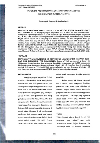 PENGUJIAN PROGRAM ENGELOLAAN TLD DI RSG-GAS UNTUK MENINGKATKAN REALIBILITAS DATA. Pengujian program pengelolaan TLD di RSG-GAS telah dilakukan untuk