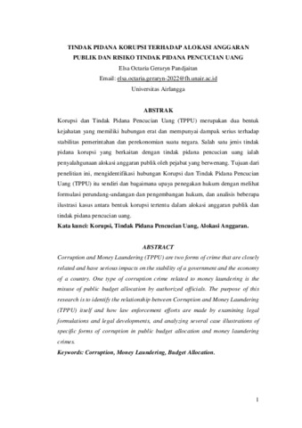 Elsa Octaria Geraryn, Pandjaitan (2023) Tindak pidana korupsi terhadap alokasi anggaran publik dan risiko tindak pidana pencucian uang. Lex Scripta: Journal of Legal Research, 3 (-): 6. pp. 1-13. ISSN 2809-2120