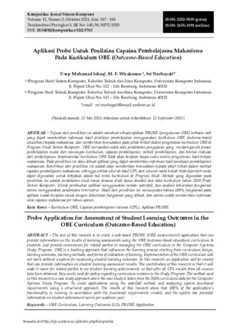 Usep Muhamad, Ishaq and M. F. Wicaksono, Wicaksono and Sri, Nurhayati (2023) Aplikasi probe untuk penilaian capaian pembelajaran mahasiswa pada kurikulum OBE (Outcame-Based Education). Komputika: Jurnal Sistem Komputer, 12 (2): 8. pp. 187-194. ISSN 2252-9039