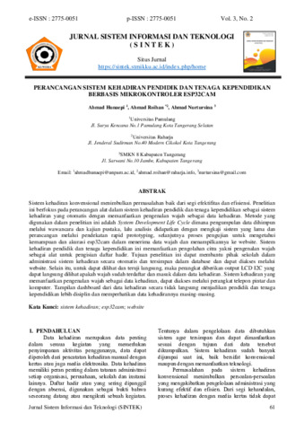 Ahmad, Hunaepi and Ahmad, Roihan and Ahmad, Nurtursina (2023) Perancangan sistem kehadiran pendidik dan tenaga kependidikan berbasis mikrokontroler esp32cam. Jurnal Sistem Informasi dan Teknologi (SINTEK), 3 (2): 5. pp. 61-67. ISSN 2775-7544