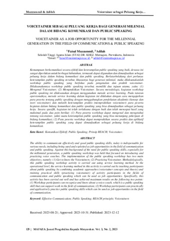 Kemampuan berkomunikasi secara efektif dan keterampilan public speaking yang baik, dewasa ini sangat diperlukan untuk berbagai kebutuhan, termasuk dapat digunakan dan dimanfaatkan sebagai peluang kerja dalam bidang komunikasi dan public speaking. Berlatar belakang dari perlunya keterampilan public speaking tersebut, khususnya bagi generasi milenial, maka dilaksanakanlah workshop public speaking yang berfokus pada pengenalan dan praktik voicetainer. Dilaksanakannya workshop public speaking tersebut, memiliki dua tujuan utama, yaitu: (1) Mengenal Voicetainer; (2) Mempraktikan Voicetainer. Secara metodologis, kegiatan workshop public speaking ini dilaksanakan dengan menggunakan metode service learning. Pada tataran opersionalnya, metode service learning dalam kegiatan ini dilakukan dengan cara mengajarkan para peserta tentang public speaking dengan menggabungkan pendekatan akademis (konsep dan teori voicetainer) dan melatih keterampilan praktis (mempraktikan voicetainer) para peserta kegiatan dalam bidang komunikasi dan public speaking yang bisa dimanfaatkan sebagai peluang kerja. Secara spesifik, kegiatan ini telah terlaksana dengan baik dan telah mencapai hasil yang maksimal pada dua poin berikut: (1) Para peserta workshop dapat mengenal dan mengetahui tentang voicetainer, yakni suatu keterampilan public speaking yang bisa menunjang pekerjaan dibidang komunikasi; (2) Para peserta workshop dapat mempraktikan secara praktis dan aplikatif keterampilan public speaking yang dapat dimanfaatkan sebagai peluang kerja di bidang komunikasi.
