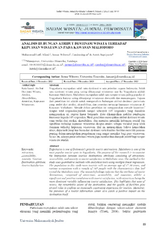 Muhammad, Lutfi Afandi and Januar, Wibowo and Candraningrat, Candraningrat and Antok, Supriyanto (2023) Analisis hubungan atribut destinasi wisata terhadap kepuasan wisatawan pada kawasan Malioboro. Sadar Wisata: Jurnal Pariwisata, 6 (2): 6. pp. 89-97. ISSN 1858-0114