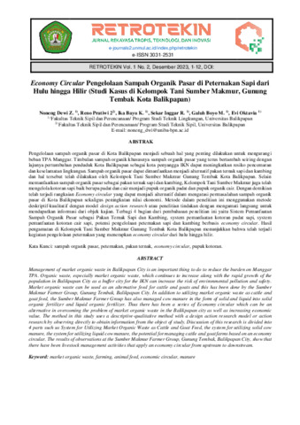 Noneng, Dewi Z. and Reno, Pratiwi and Ika, Bayu K. and Sekar, Inggar R. and Galuh, Boyo M. and Evi, Oktavia (2023) Economy circular pengelolaan sampah organik pasar di peternakan sapi dari hulu hingga hilir (Studi kasus di Kelompok Tani Sumber Makmur, Gunung Tembak Kota Balikpapan). Jurnal Rekayasa Tropis, Teknologi, dan Inovasi, 1 (2): 1. pp. 1-12. ISSN 3031-2531