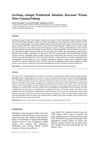 Devina, Marshanda and Lia, Rosmala Schiffer and Rehulina, Apriyanti (2023) Gerbang sebagai pembentuk identitas kawasan wisata Situs Gunung Padang. SADE: Jurnal Arsitektur, Planologi Dan Teknik Sipil, 2 (1): 6. pp. 28-37. ISSN 2776-2947