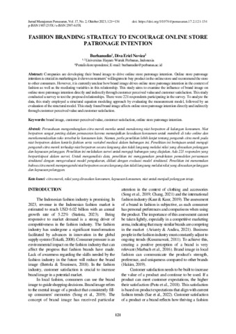 Burhanudin, Burhanudin and Diva, Eriel Noviza (2023) Fashion branding strategy to encourage online store patronage intention. Jurnal Manajemen Pemasaran, 17 (2): 6. pp. 121-134. ISSN 1907-235X