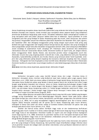 Octavianto, Samir and Gadis, Sri Haryani and Lukman, Lukman and Syahroma, Husni Nasution and Rahmi, Dina and Ira, Akhdiana (2018) Iktiofauna Danau Hanjalutung, Kalimantan Tengah. In: Prosiding Pertemuan Ilmiah Tahunan Ke-III, Masyarakat Limnologi Indonesia, 31 Oktober 2017, Gedung Kusnoto LIPI Bogor.
