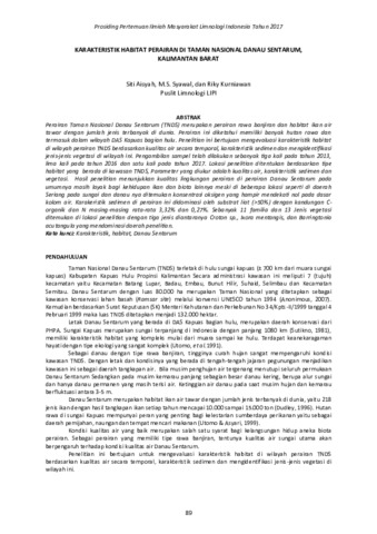 Siti, Aisyah and Muhammad, Suhaemi Syawal and Riky, Kurniawan (2018) Karakteristik habitat perairan di Taman Nasional Danau Sentarum, Kalimantan Barat. In: Prosiding Pertemuan Ilmiah Tahunan Ke-III, Masyarakat Limnologi Indonesia, 31 Oktober 2017, Gedung Kusnoto LIPI Bogor.