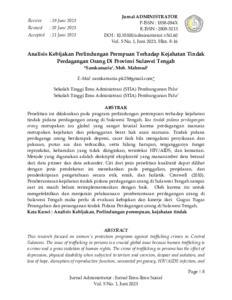 Samkamaria, Samkamaria and Moh., Mahmud (2023) Analisis kebijakan perlindungan permpuan terhadap kejahatan tindak perdagangan orang di Provinsi Sulawei Tengah. Jurnal Administrator: Jurnal Ilmu-ilmu Sosial, 5 (1): 2. pp. 8-16. ISSN 1858-084X