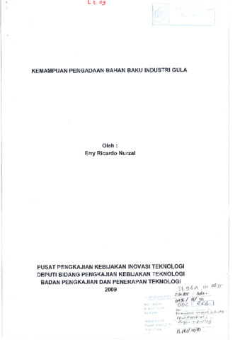 Erry, Ricardo Nurzal (2009) Kemampuan pengadaan bahan baku industri gula. Technical Report. Badan Pengkajian dan Penerapan Teknologi, Jakarta.