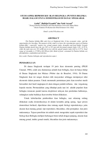 Azrita, Azrita and Hafrijal, Syandri and Netti, Aryani (2010) Studi aspek reproduksi ikan belingka (Puntius belinka Blkr) dalam upaya domestikasi di Danau Singkarak. In: Prosiding Seminar Nasional Limnologi V, 28 July 2010, IPB International Convention Center.