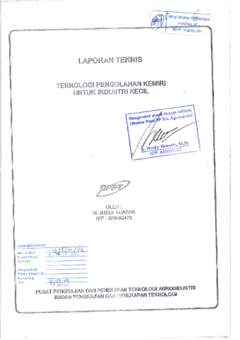 Mochammad, Jusuf Djafar (2009) Teknologi pengolahan kemiri untuk industri kecil. Technical Report. Badan Pengkajian dan Penerapan Teknologi, Jakarta.