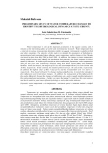 Luki, Subehi and M., Fakhrudin (2010) Preliminary study of water temperature changes to identify the hydrological dynamics at Situ Cibuntu. In: Prosiding Seminar Nasional Limnologi V, 28 July 2010, IPB International Convention Center.