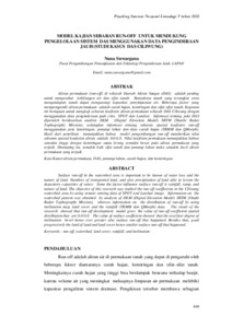 Nana, Suwargana (2010) Model kajian sebaran run-off untuk mendukung pengelolaan sistem DAS menggunakan data penginderaan jauh (studi kasus DAS Ciliwung). In: Prosiding Seminar Nasional Limnologi V, 28 July 2010, IPB International Convention Center.