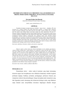 Penelitian bertujuan menginventarisasi distribusi logam berat plumbum (Pb) dan +6 kromium (Cr) dalam sedimen dan profil fisiko-kimia perairan di Sungai Musi, Sumatera Selatan. Penelitian dilakukan pada bulan April dan Juni 2007. Contoh sedimen dan air diambil dari 50 stasiun yang terbagi dalam zona hulu, tengah dan hilir. Konsentrasi Pb dan Cr +6 dianalisis dengan menggunakan absorbsi spektroskopi fotometer (AAS). Konsentrasi kedua logam tersebut cenderung meningkat dari hulu hingga hilir Sungai Musi, tampaknya berkaitan dengan peningkatan kegiatan industri, transportasi, dan galangan kapal yang dicirikan dengan pengendapan zat tersuspensi di bagian hilir dan perubahan tekstur sedimen yang mengarah pada lempung berdebu. Konsentrasi logam berat plumbum dan chromium dalam sedimen Sungai Musi tertinggi ditemukan pada bulan Juni, masing-masing sebesar 1,82 µg/g dan 13,5 µg/g. Kedua konsentrasi logam berat tersebut dan beberapa parameter fisiko-kimia air lainnya masih berada diambang batas sehingga masih di tolerir oleh biota organisme.