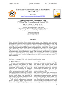 Filia, Filia and Joni, Willianto and Willy, Hardian (2021) Aplikasi manajemen pergudangan pada PT. Mitra Tiga Perkasa Indonesia berbasis web. Jurnal Sistem Informasi dan Teknologi (SINTEK), 1 (1): 3. pp. 15-20. ISSN 2775-0051