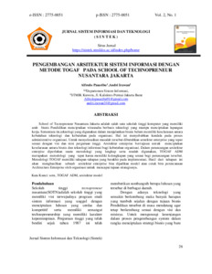 Alfredo, Pasaribu and Andri, Irawan (2022) Pengembangan arsitektur sistem informasi dengan metode TOGAF pada School of Technopreneur Nusantara Jakarta. Jurnal Sistem Informasi dan Teknologi (SINTEK), 2 (1): 5. pp. 26-35. ISSN 2775-0051