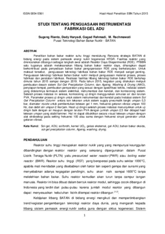Rianto, Sugeng and Haryadi, Dedy and Rahmadi, Gagat and Rachmawati, Meniek (2016) Studi Tentang Penguasaan Instrumentasi Fabrikasi Gel ADU. Prosiding Seminar Hasil-hasil Penelitian EBN Tahun 2015, - (-). pp. 1-12. ISSN 0854-5561