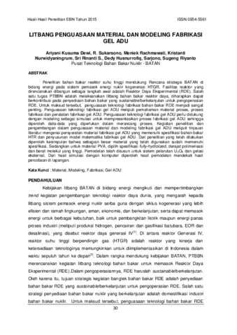 Kusuma Dewi, ariyani and Sukarsono, Sukarsono and Rachmawati, Meniek and Nurwidyaningrum, Kristanti and Rinanti Susilowati, Sri and Husnurrofiq, Dedy and Sarjono, Sarjono and Riyanto, Sugeng (2015) Litbang Penguasaan Material Dan Modeling Fabrikasi Gel ADU. Proseding Seminar Hasil-Hasil Penelitian EBN Tahun 2015, - (-). pp. 30-47. ISSN 0854-5561