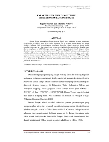 Fajar, Setiawan and Hendro, Wibowo (2014) Karakteristik fisik Danau Tempe sebagai danau paparan banjir. In: Prosiding Pertemuan Ilmiah Tahunan Ke-I, Masyarakat Limnologi Indonesia, 3 Desember 2013, Cibinong.