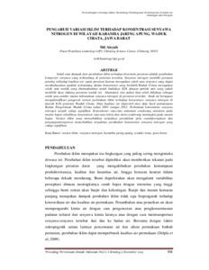 Salah satu dampak dari perubahan iklim terhadap ekosistem perairan adalah perubahan komposisi senyawa yang terkandung di perairan tersebut. Senyawa nitrogen memiliki peranan penting terhadap kualitas air suatu perairan karena merupakan salah satu senyawa yang dapat membahayakan apabila terkandung dalam konsentrasi yang berlebih.Waduk Cirata merupakan salah satu waduk yang diamanfaatkan untuk budidaya KJA dengan jumlah unit yang sudah melebihi daya dukung perairan waduk ini. Akumulasi sisa pakan ikan telah dididuga sebagai salah satu sumber utama keberadaan senyawa nitrogen di perairan tersebut. Studi ini bertujuan mengidentifikasi pengaruh variasi perbedaan iklim terhadap konsentrasi senyawa nitrogen di daerah KJA perairan Waduk Cirata. Data kualitas air diperoleh dari data hasil pemantauan Badan Pengelolaan Waduk Cirata tahun 2003 sampai 2012. Perbedaan konsentrasi senyawa nitrogen terjadi cukup signifikan. Konsentrasi rata-rata amonium cenderung menurun pada musim hujan sebaliknya konsentrasi rata-rata nitrat dan nitrit cenderung meningkat pada musim hujan. Variasi iklim yang menyebabkan terjadinya perubahan pola curah/presipitasi dan penguapan/evaporasi menyebabkan terjadinya perubahan konsentrasi senyawa nitrogen yang cukup signifikan.