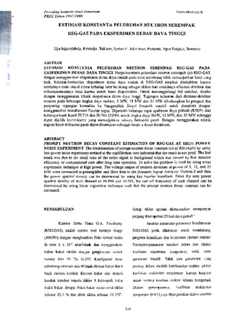 Uju Jujuratisbela, UJ and Tukiran Surbakti, TS and Surian Pinem, SP and Jaka Iman, JI and Puryono, Puryono and Agus Sanjaya, AS and Suwarno, Suwarno (1998) ESTIMASI KONSTANTA PELURUHAN NEUTRON SEREMPAK RSG-GAS PADA EKSPERIMEN DERAU DAYA TINGGI. PROSIDING SEMINAR HASIL PENELITIAN PRSG. pp. 204-212. ISSN 0854-5278