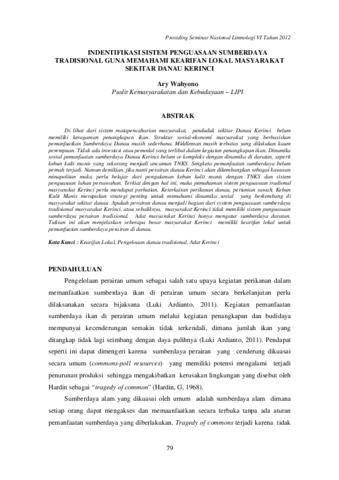 | Uncontrolled Keywords: | Kearifan Lokal, Pengeloaan danau tradisional, Adat Kerinci |