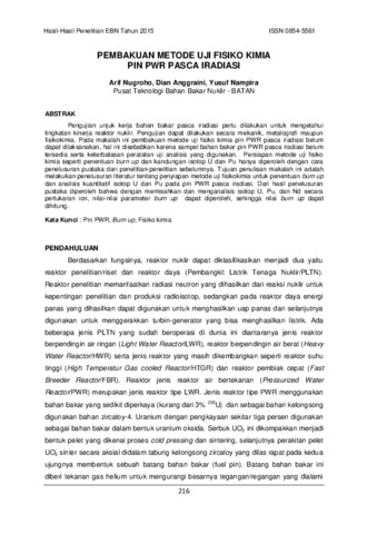 fisikokimia. Pada makalah ini pembakuan metode uji fisiko kimia pin PWR pasca iradiasi belum