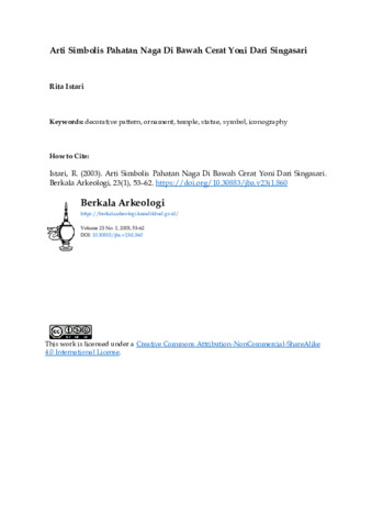 Rita, Istari (2003) Arti simbolis pahatan naga di bawah cerat yoni dari Singasari. Berkala Arkeologi, 23 (1). pp. 53-62. ISSN 0216 - 1419