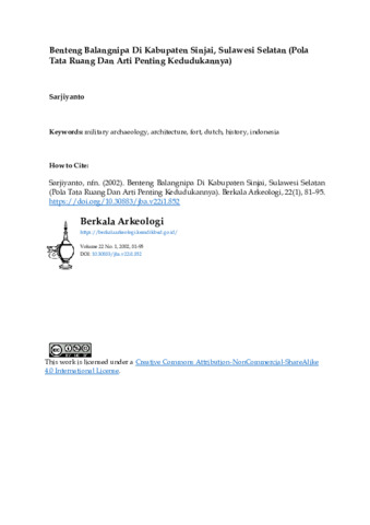 Sarjiyanto, Sarjiyanto (2002) Benteng Balangnipa di Kabupaten Sinjai, Sulawesi Selatan (Pola tata ruang dan arti penting kedudukannya). Berkala Arkeologi, 22 (1). pp. 81-95. ISSN 0216 - 1419
