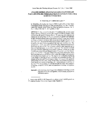 M., Wahid Dody K. and Sutikno, Sutikno and Sunarto, Sunarto (2008) Analisis risiko awan panas gunungapi Merapi pasca erupsi 2006 terhadap bangunan dan penduduk Kabupaten Sleman. Jurnal Sains dan Teknologi Mitigasi Bencana, 3 (1): 2. pp. 9-16. ISSN 0126-4907